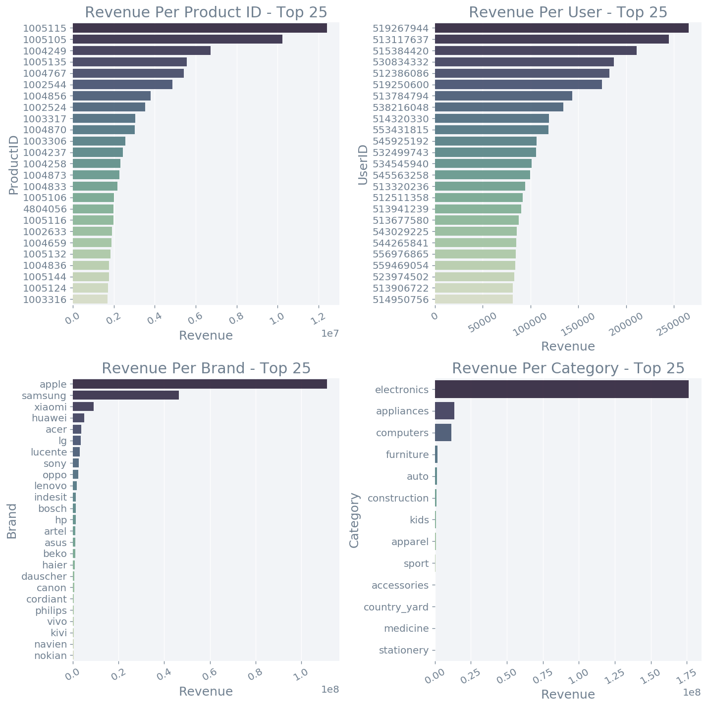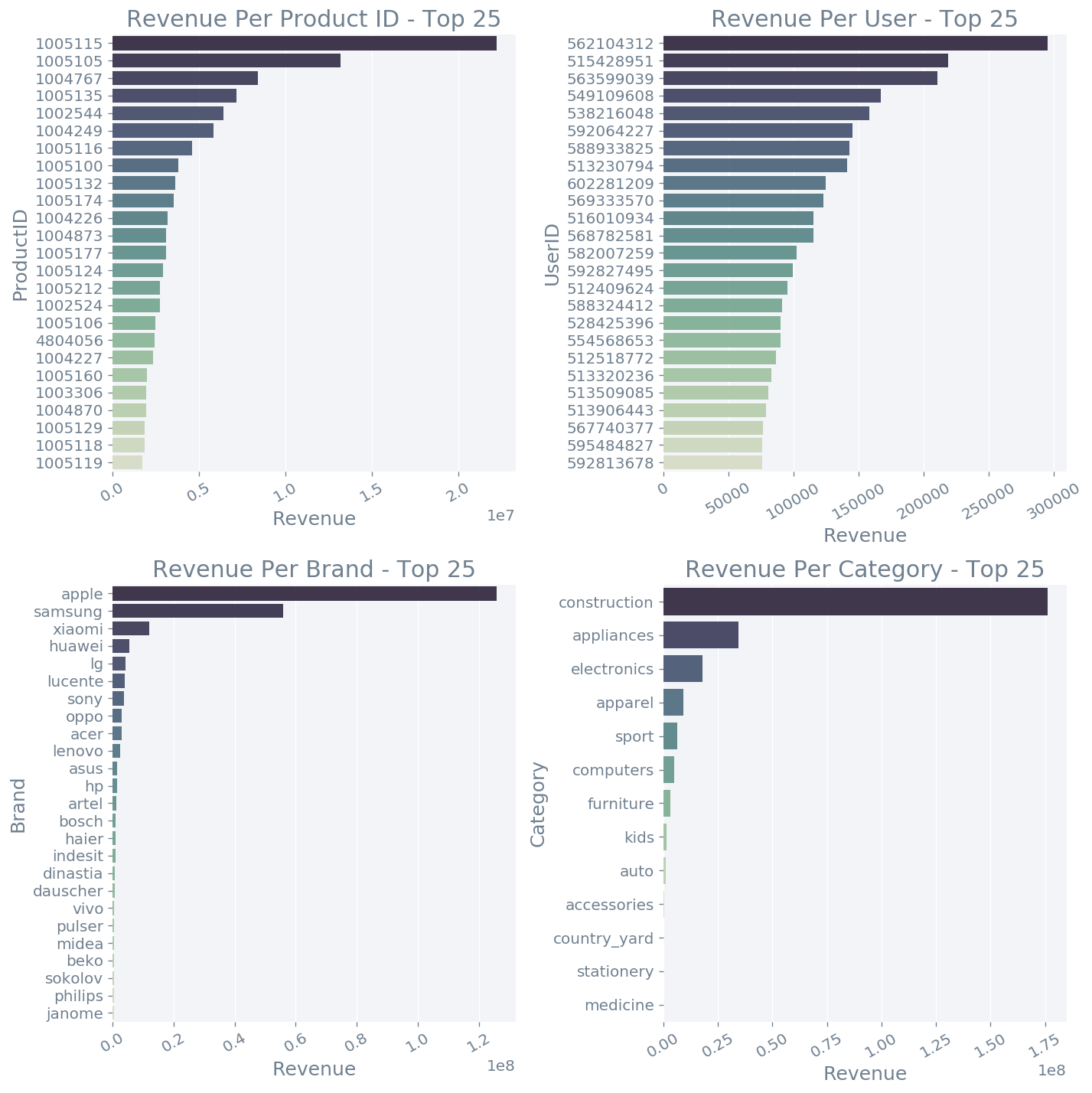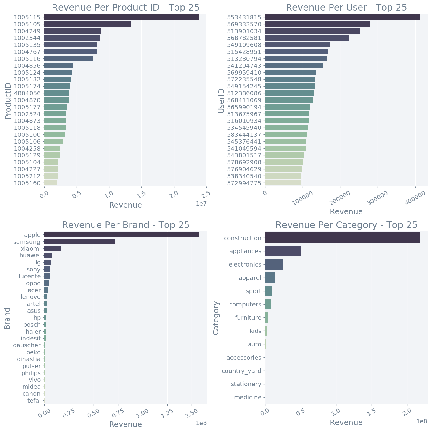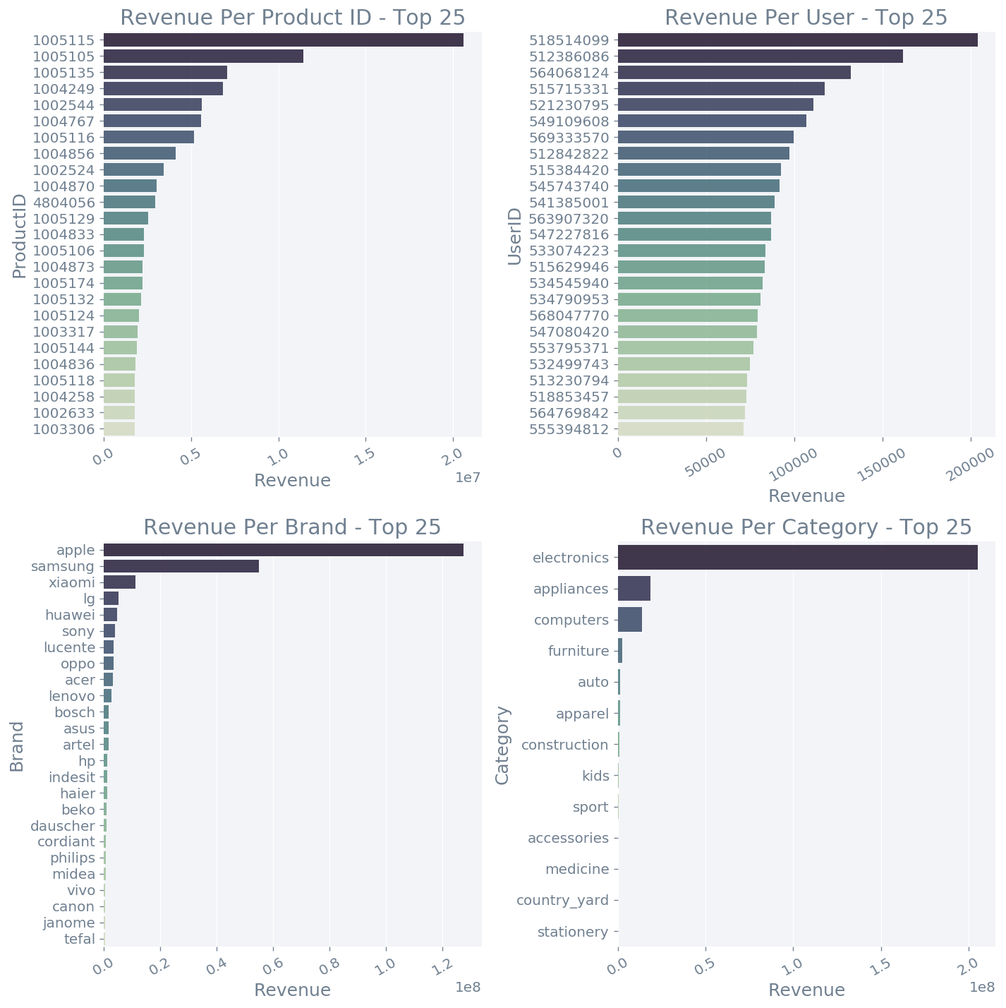 When looking at the header information for each data file, it is important to note that each row is representative of an event by a user. This is recorded with a timestamp and the event classification. The possibilities include view, cart, or purchase. For this analysis, I am mainly concerned with the purchase event types.