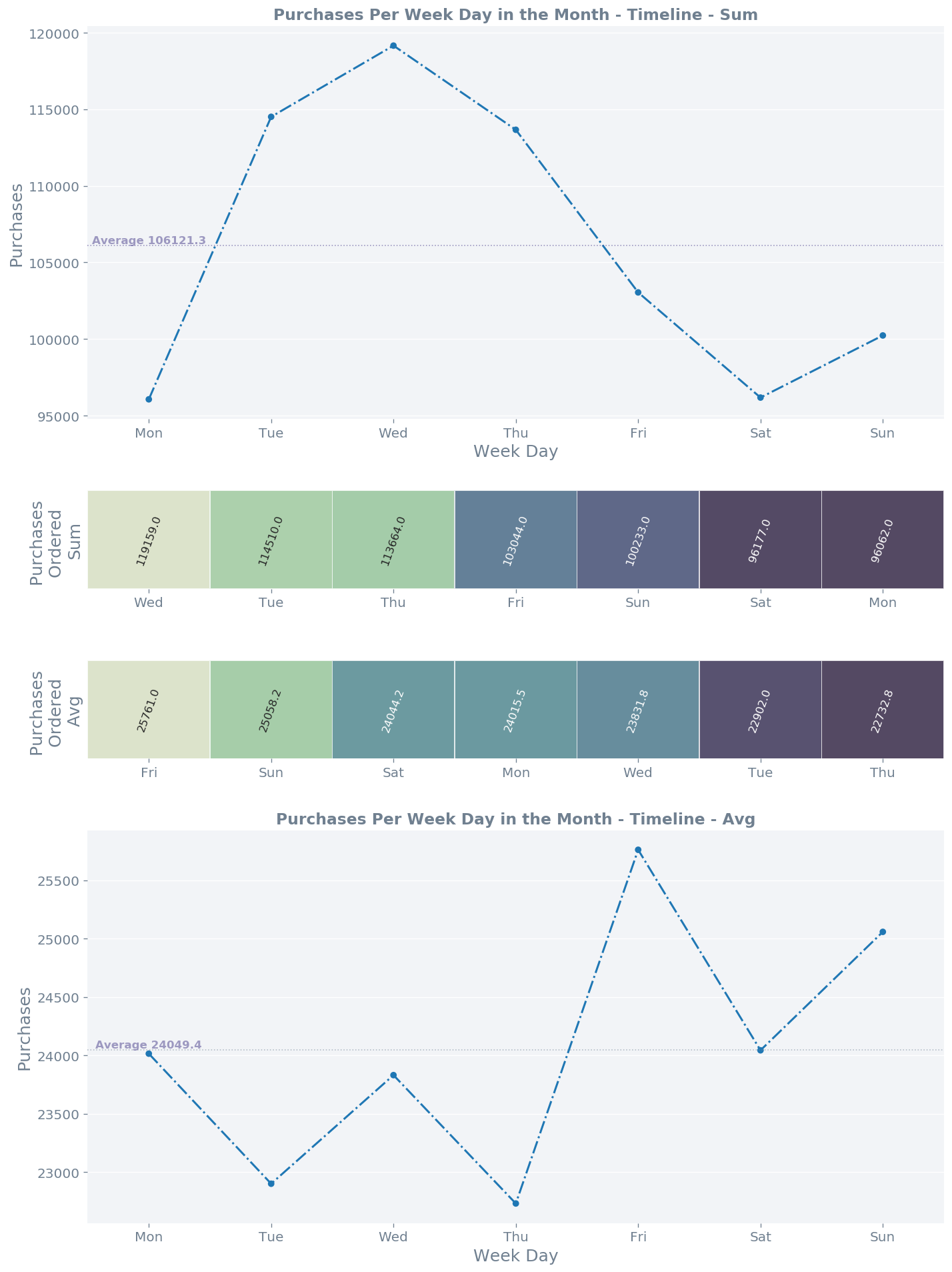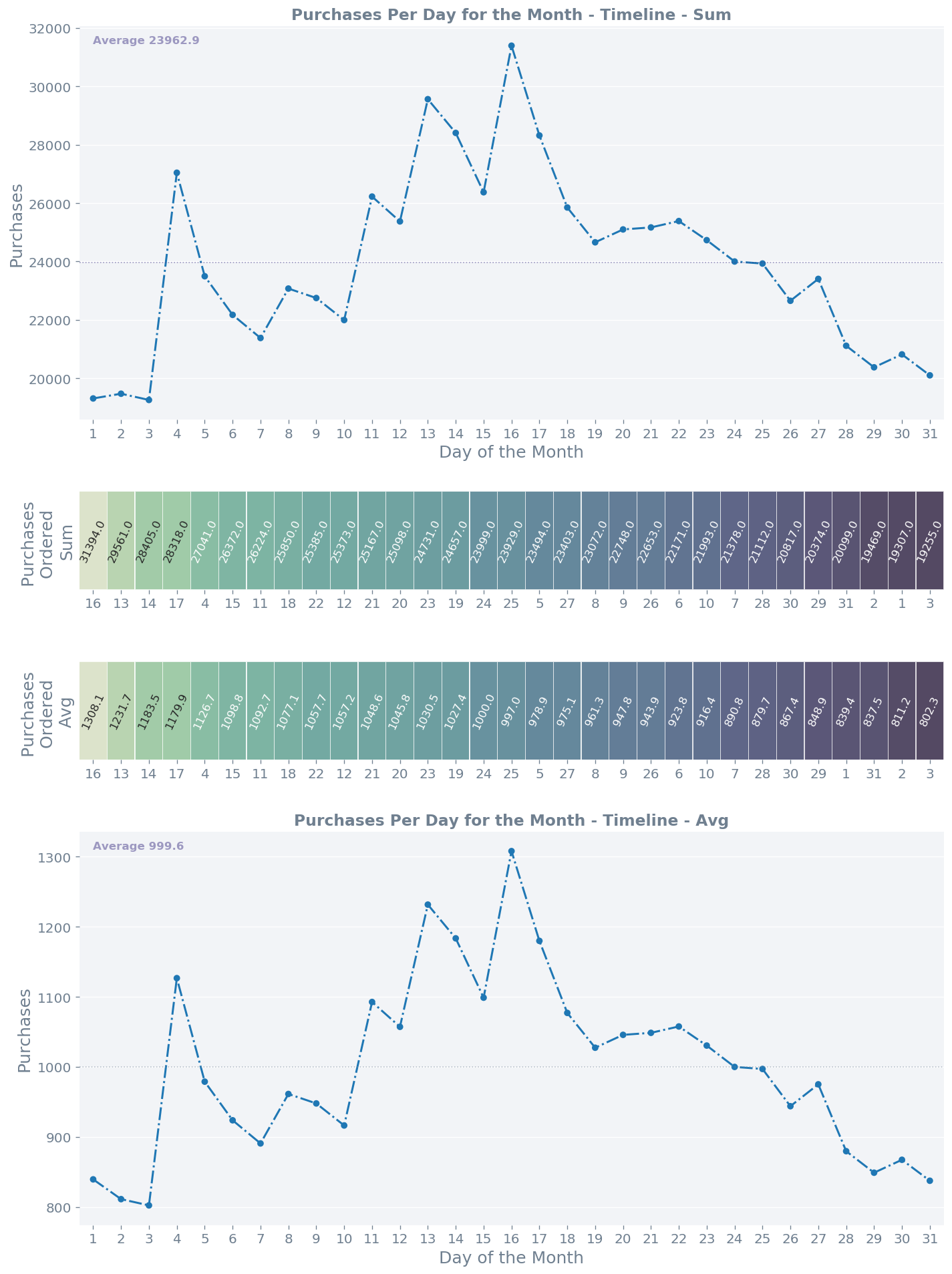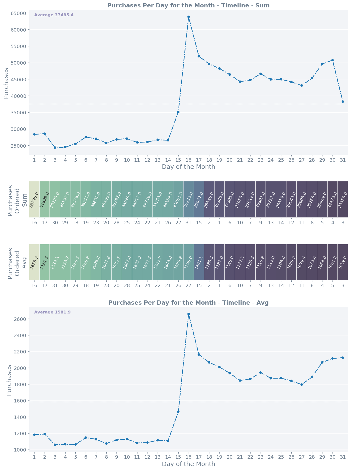 In this section I quickly review the total record count per each month. The output is order by month (oct-nov-dec-jan). The range is between 42 million to 67 million, with October with the least, and December with the most total events.