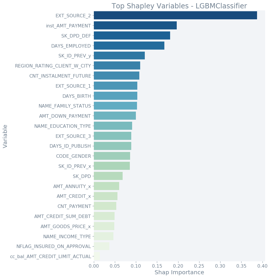 This section is a rough duplicate of the above section, with one change. While the above train/test split uses the full set of attributes, the below data only encorporates the top 25 most important features as an output of the shapley values. These are list in the code below.