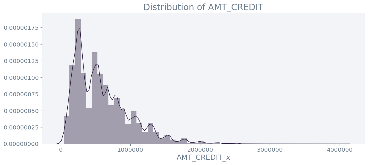 Looking at the distribution of credit amount below, we see initially notice that the data is right skewed, where most of the observations would have credit limits below 1,000,000.